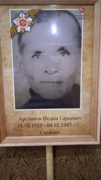 Из боевой характеристики партизана Арусланова Ислама Гареевича, подписанной командиром партизанской отряда партизанской бригады “Беларусь” от 18 июня 1944 г.: “Арусланов Ислам Гареевич, 04.09.1943 г. был в группе охотников по уничтожению ж.д. охраны. Лично убил 1 немца и взял в трофее6 автомат 1, патрон 88.