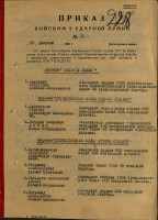 16 февраля 1945 г., участвуя в боях, восстанавливая связь батареи с наблюдательным пунктом, был тяжело ранен разрывной пулей в правую руку с повреждением костей. В боевых порядках пехоты 2-го батальона 601 СП учавствовал в отражении 4-х контратак противника и из личного оружия уничтожил 9 немецких солдат.