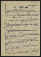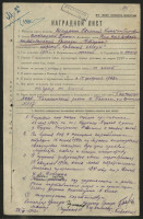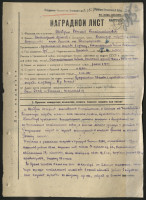 1943 г. Из инициативной группы, выделенной из состава бр. «Старик», организовал боевой партизанский отряд им. Ворошилова, который со стойкостью и мужеством ведет беспощадную битву с немецкими захватчиками. На счету имеет 3 спущенных эшелона, 2 уничтоженных склада с б/припасами, 25 уничтоженных автомашин, 940 убитых немецких солдат и офицеров, из них 1 генерал армии и 1 генерал полиции Бах. Отряд в своем количестве насчитывает 180 чел. Вооружение РП 10, станковых пулеметов 3. Остальное винтовки и личное оружие…».