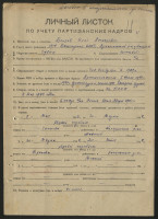 В течение месяца мы пробирались на восток в поисках партизан и нашли их. В партизанском отряде Ивана Ивановича было около 50 человек. На весь отряд был один станковый пулемет, но и тот неисправный. Пулемет я починил, и нас оставили в отряде, закрепив за нами этот пулемет. Через некоторое время отряд попал в засаду и был разбит. В то время я и Разуменко были на задании. По возвращении попали в отряд лейтенанта Ивана Николаевича Тараховича (партизанский псевдоним его - Дунаев), были зачислены в бригаду имени В.И. Чапаева, в которой находился с июня 1942 по 22 июля 1944 г.