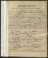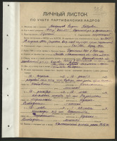 Январь 1943 г. – май 1944 г. – начальник штаба партизанского отряда им. А.Я. Пархоменко.