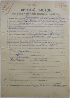 На фронте с 22.06.1941 г. по 23.07.1941 г. В июле 1941 г. был ранен в руку в Невельском районе. С июля 1941 г. по 5 августа 1941 г. был в плену в Плоцке. В партизанский отряд прибыл с д.Короли Роднянского с/с Россонского р-на Витебской обл. 02.08.1942 г.
