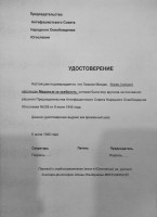 Южный фронт, антифашистское Народно-освободительное движение Югославии - Звание:
