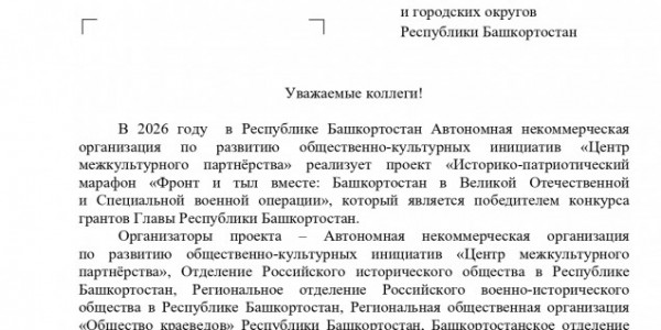 Министерство культуры Республики Башкортостан призвало муниципалитеты поддержать республиканский марафон «Фронт и тыл вместе»