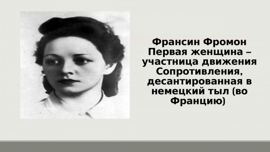 В январе 1942 года во Францию была десантирована Франсин Фромон, именем которой сегодня названы улицы многих городов страны.