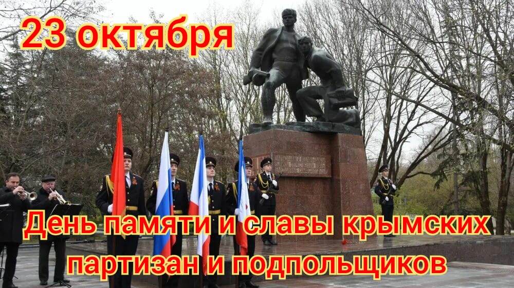 23 октября 2024 г.Сегодня, 23 октября, в Крыму отмечается День памяти и славы крымских партизан и подпольщиков