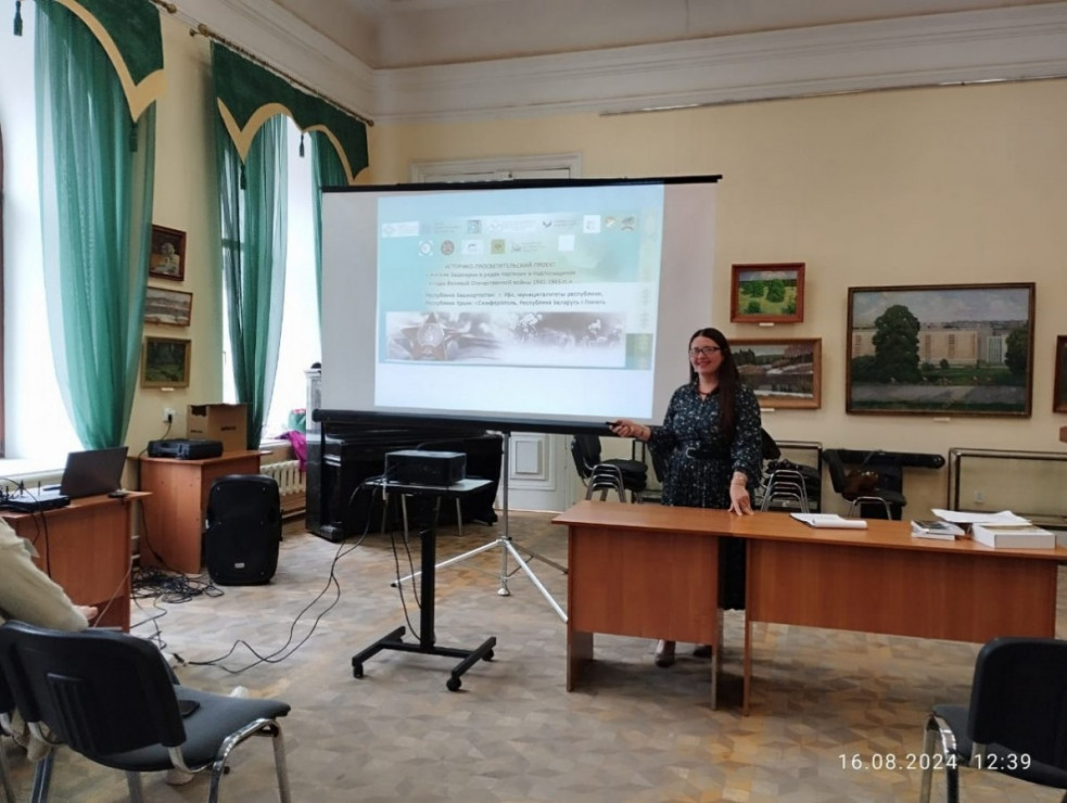 На Республиканском молодежном библиотечном форуме «Пульс», который прошел с 12 по 16 августа 2024 года на базе Национальной библиотеке имени А.-З.Валиди Республики Башкортостан был представлен Историко-просветительский проект «Жители Башкирии в рядах партизан и подпольщиков в годы Великой Отечественной войны 1941–1945 гг.». Проект реализуется АНО «Центр межкультурного партнёрства» при поддержке Фонда грантов Главы Республики Башкортостан на 2024 год.