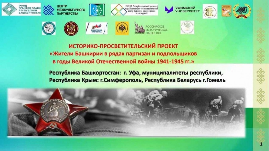 Историко-культурным проектом «Жители Башкирии в рядах партизан и подпольщиков в годы Великой Отечественной войны 1941-1945 гг.» занимается автономная некоммерческая организация по развитию общественно-культурных инициатив «Центр межкультурного партнёрства» при поддержке фонда Главы Республики Башкортостан.