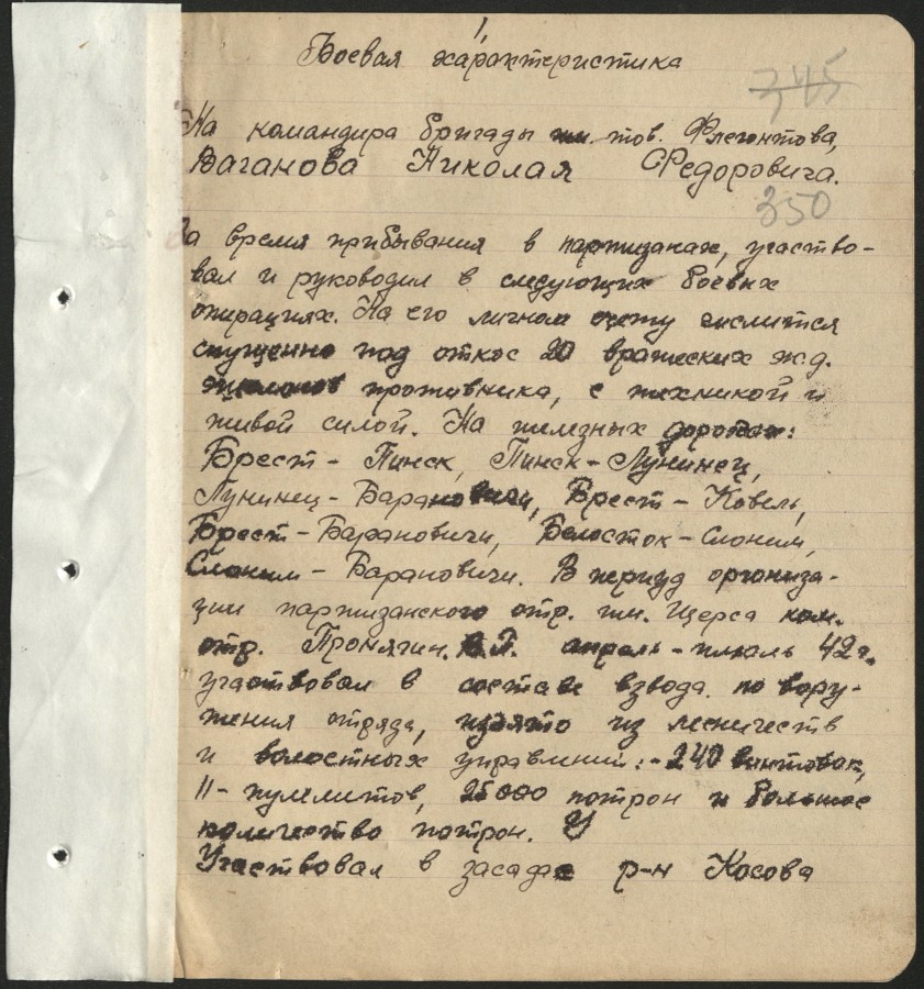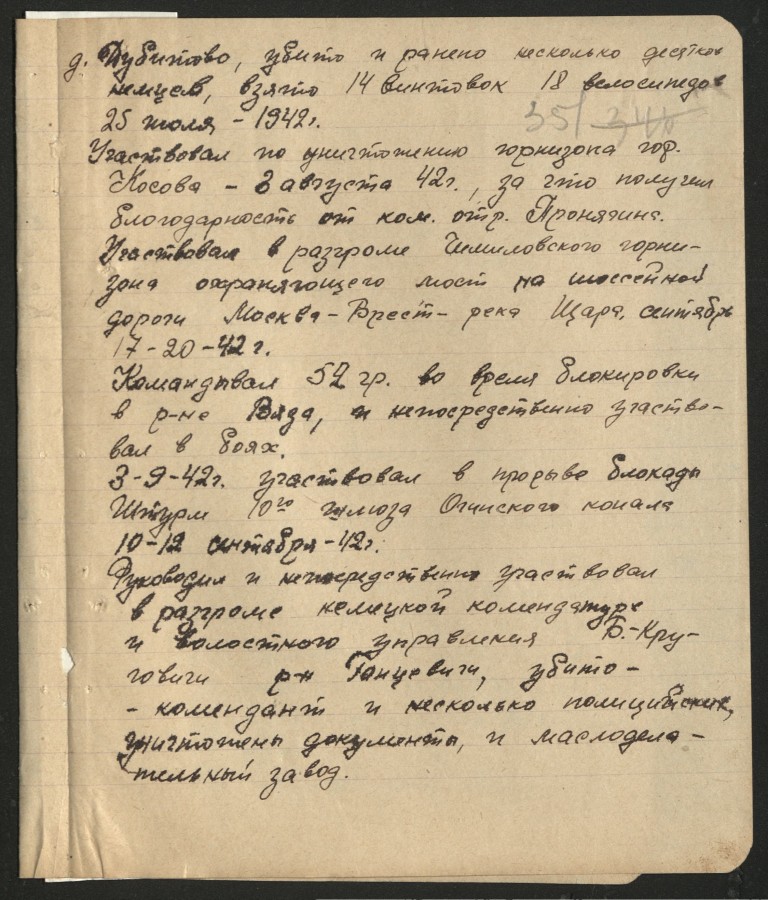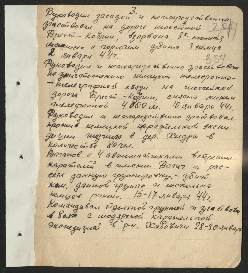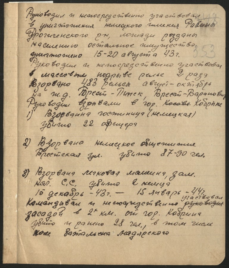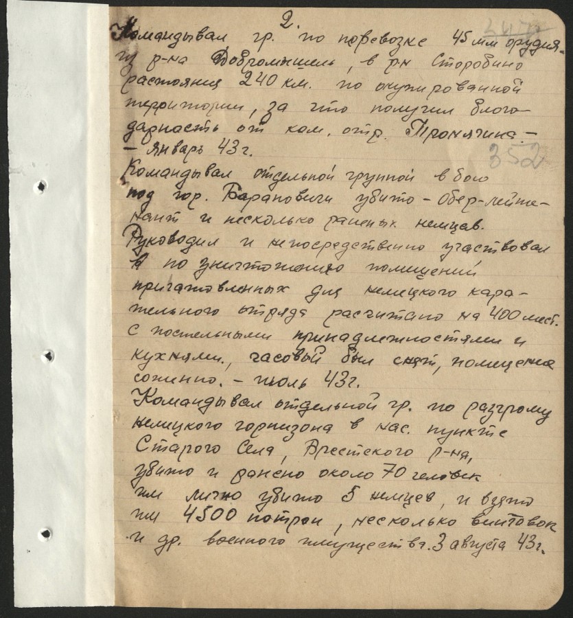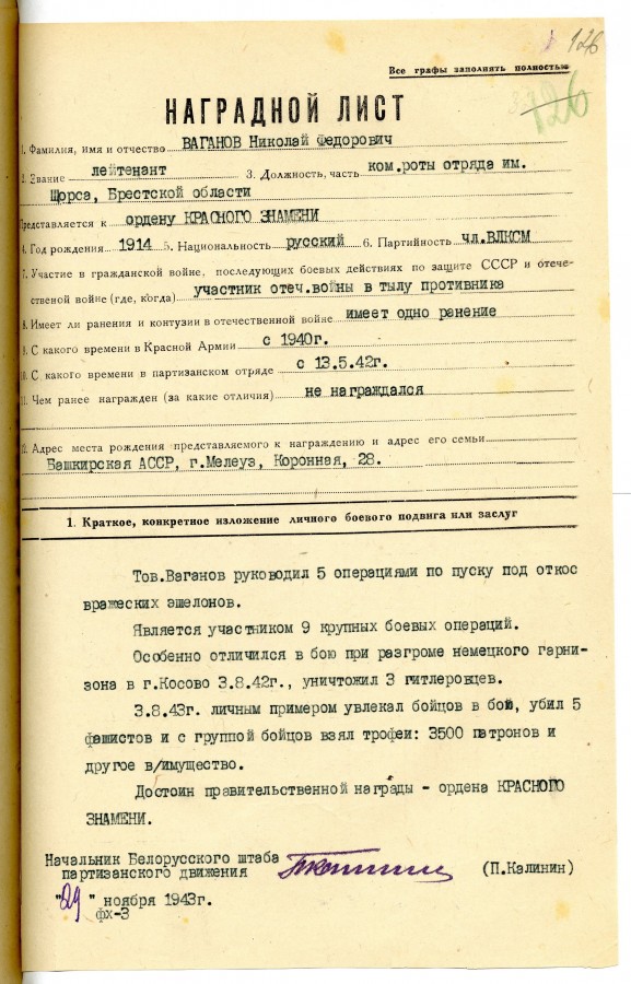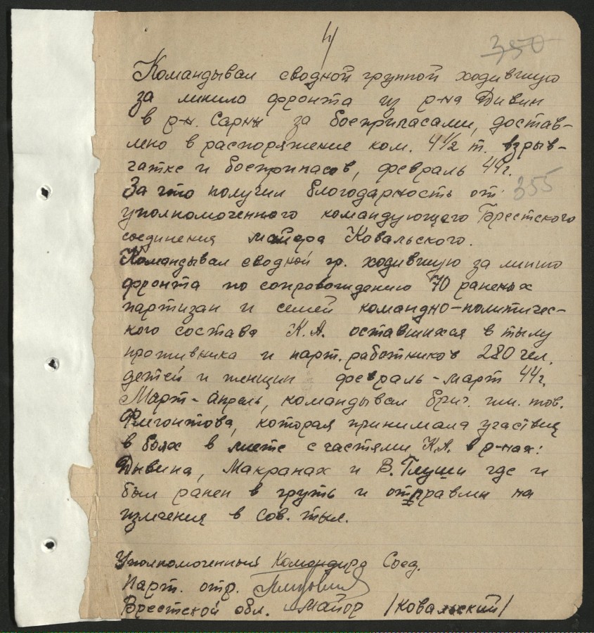 ✔ Вывел за линию фронта 70 раненых партизан и 280 женщин с детьми.